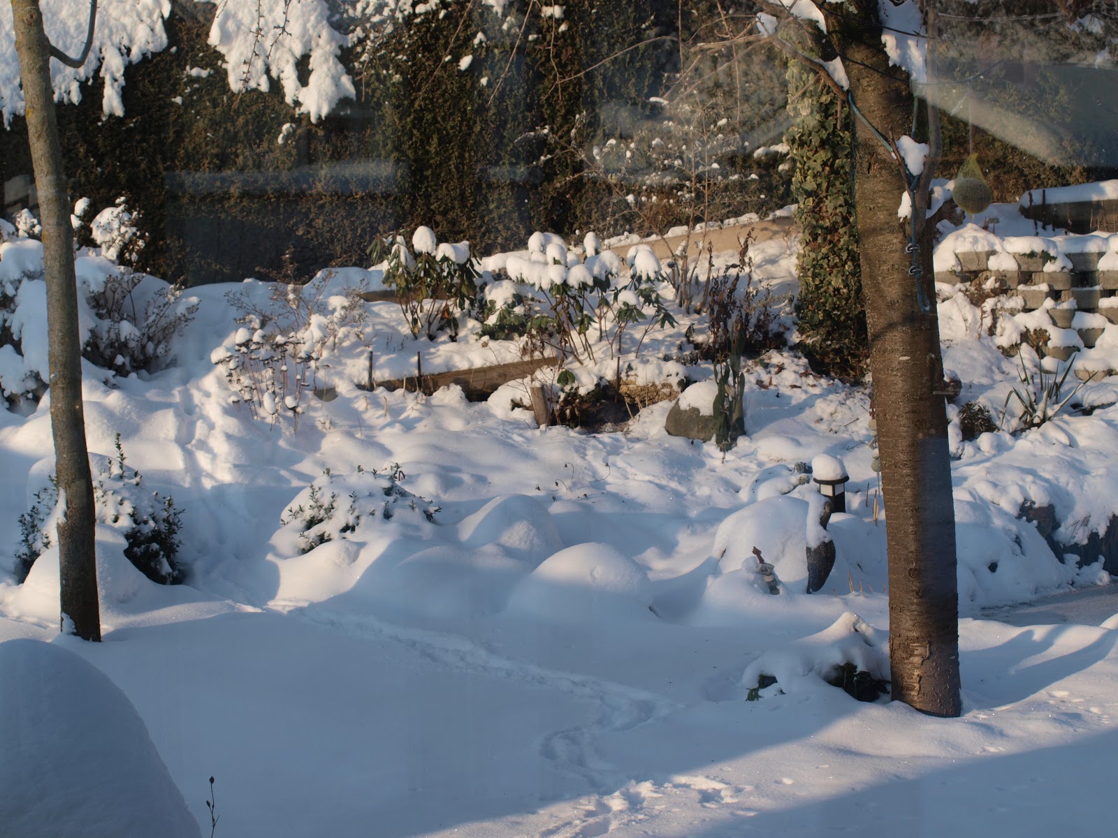 Denkste - jede Nacht schneit es und schon schaut unser Garten wieder so aus